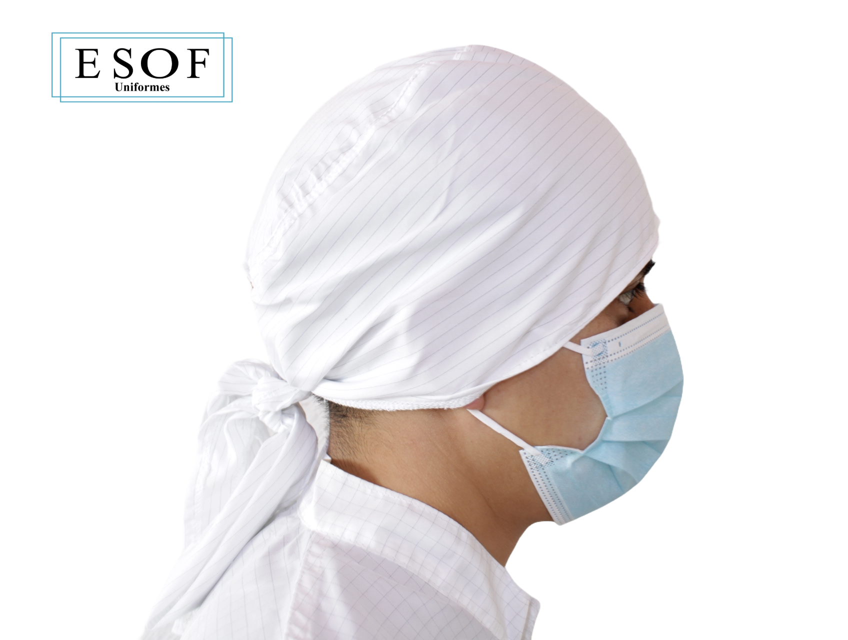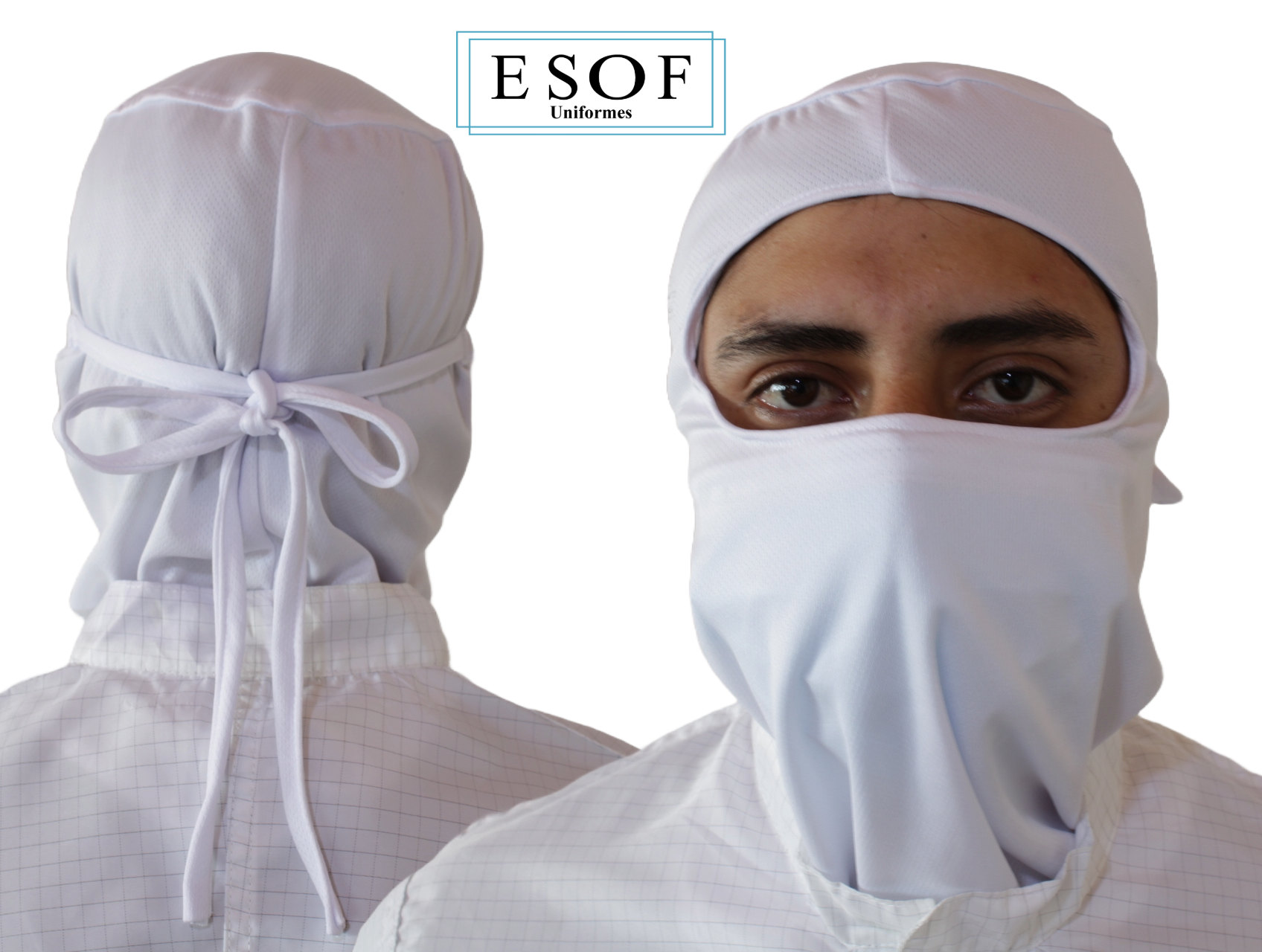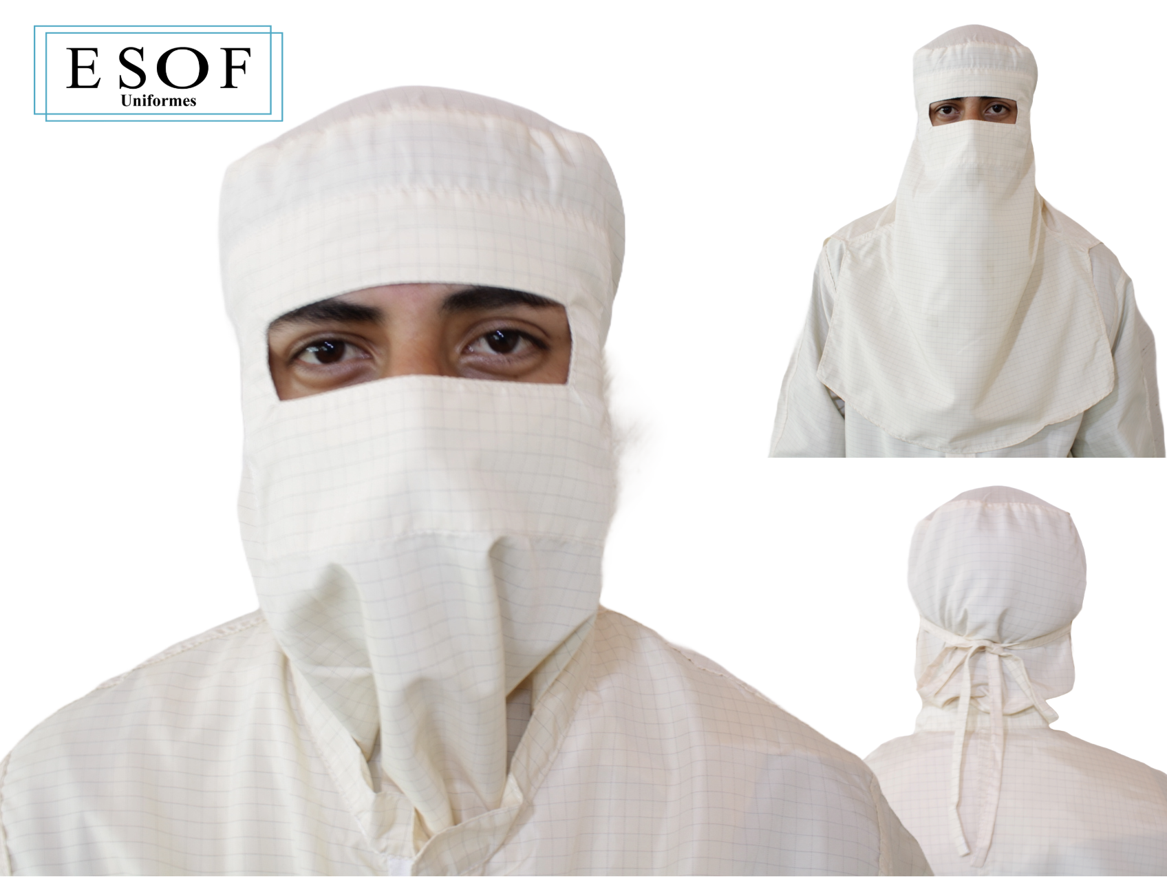 Escafandra descubierta solo en la parte de los ojos elaborada en tela antiestática con cintas ajustables.